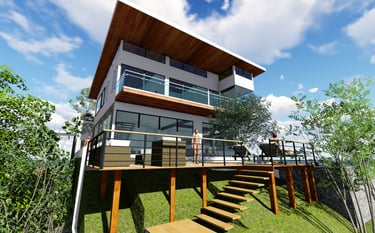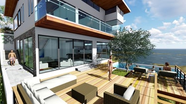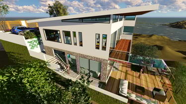 Un concepto elegante a la orilla del mar o al borde de un acantilado para aprovechar las vistas. Nuestros diseños en casas de playa son una combinación entre lo rústico y lo moderno.